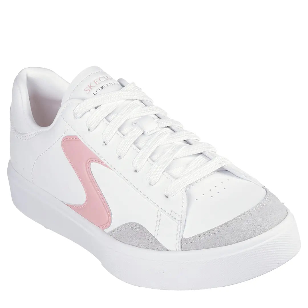 A modern classic court-style combines with comfort and a pop of color in Skechers Eden LX - Slick Talk. This lace-up sneaker features a duraleather upper with suede overlays and a cushioned Skechers Air-Cooled Memory Foam® insole.