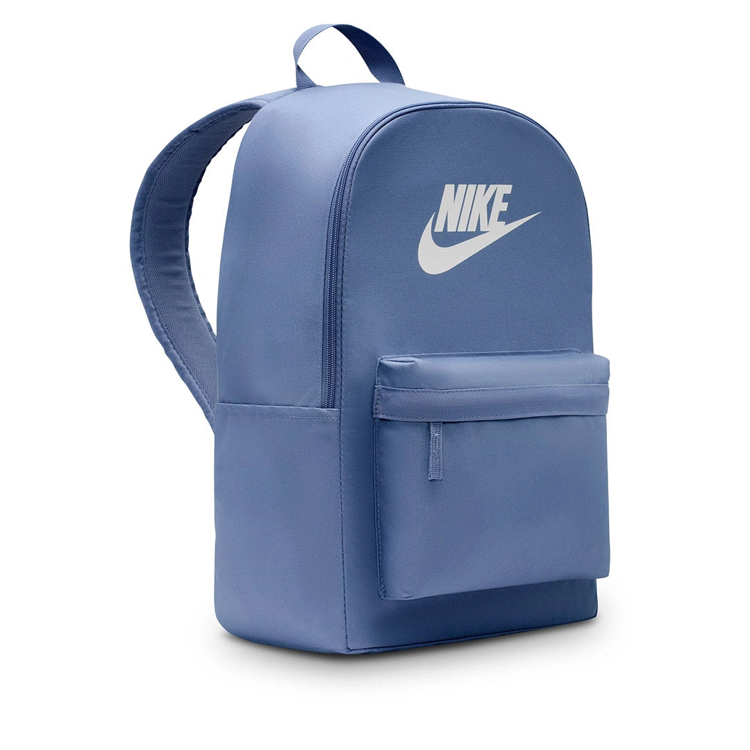 Nike Heritage Backpack (25L) Take your gear to go with the Nike Heritage Backpack. Its spacious main compartment features a sleeve that holds up to a 15" laptop, so your computer is never out of reach. 2 zippered accessories pockets help keep your gear organized and easy to grab. This product is made with at least 65% recycled polyester fibers. The extra zipper compartments help keep you organized, add convenience and secure your keys, wallet and phone. Densely woven polyester provides heavyweight support. The shoulder straps and back are padded for extra comfort. More Details
