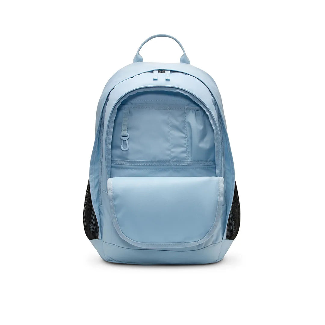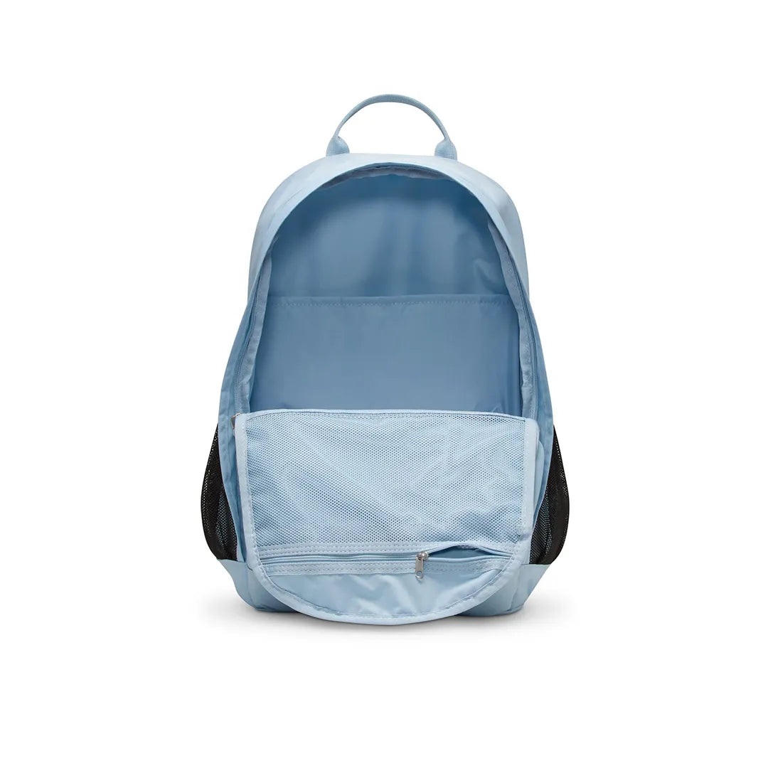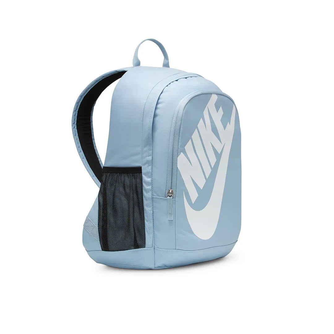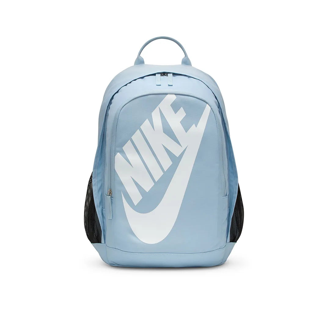 Nike Hayward Backpack GRAB YOUR GEAR AND GET GOING. The Nike Hayward Backpack is a new twist on an old favorite with plenty of room for your gear. The durable shell features a new graphic along with additional pockets for extra small-item storage. Polyester shell has a dense weave for lasting durability. Padded shoulder straps adjust for custom comfort. Large main compartment and side pockets for storage. Mesh side pockets for small-item storage. Haul loop at the top for an alternative carrying option. More Details