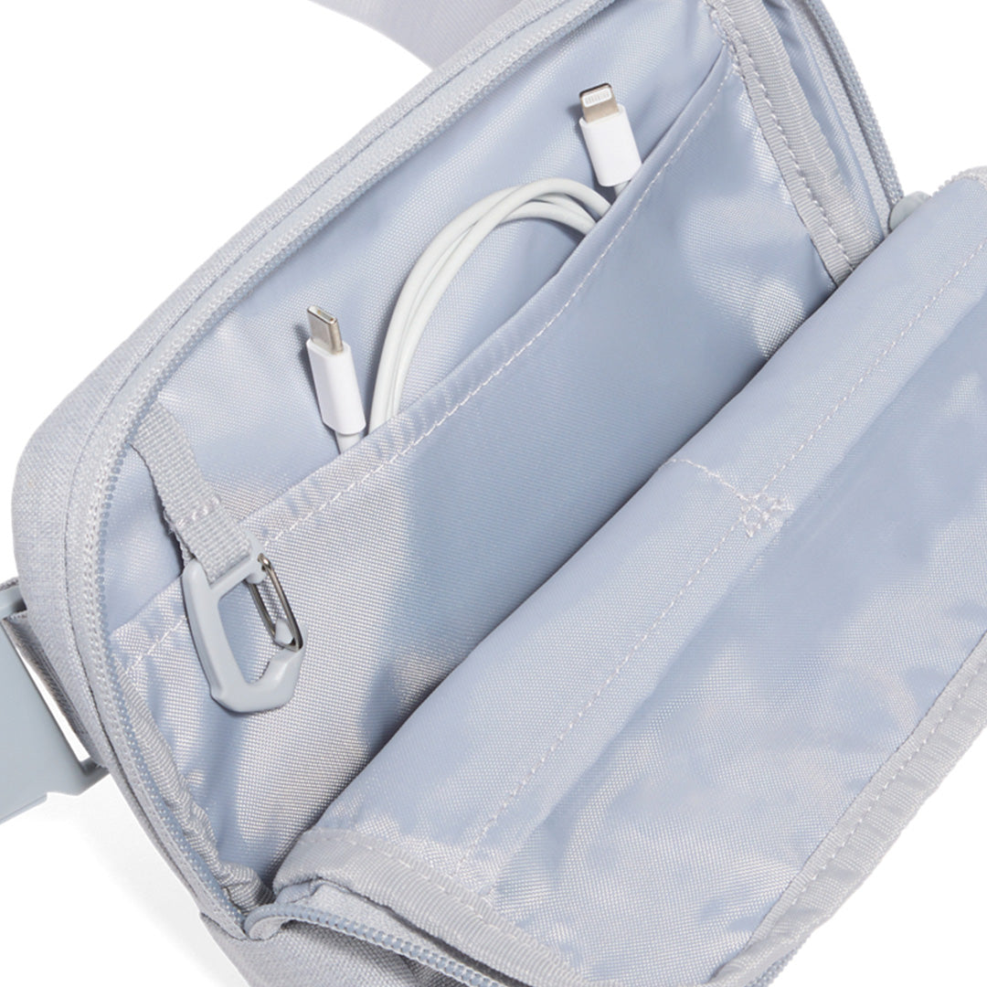 - Adjustable strap with buckle closure can be worn as a waist bag or a crossbody