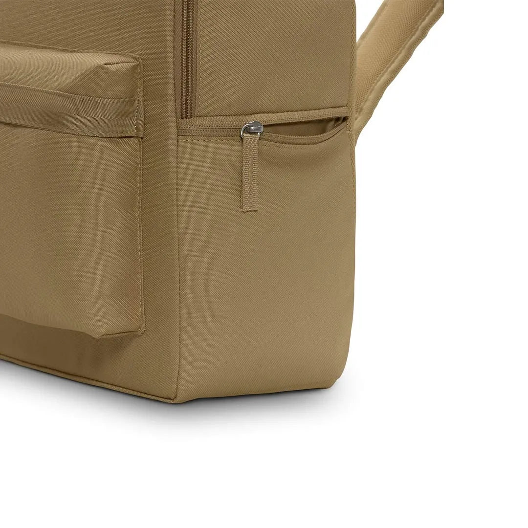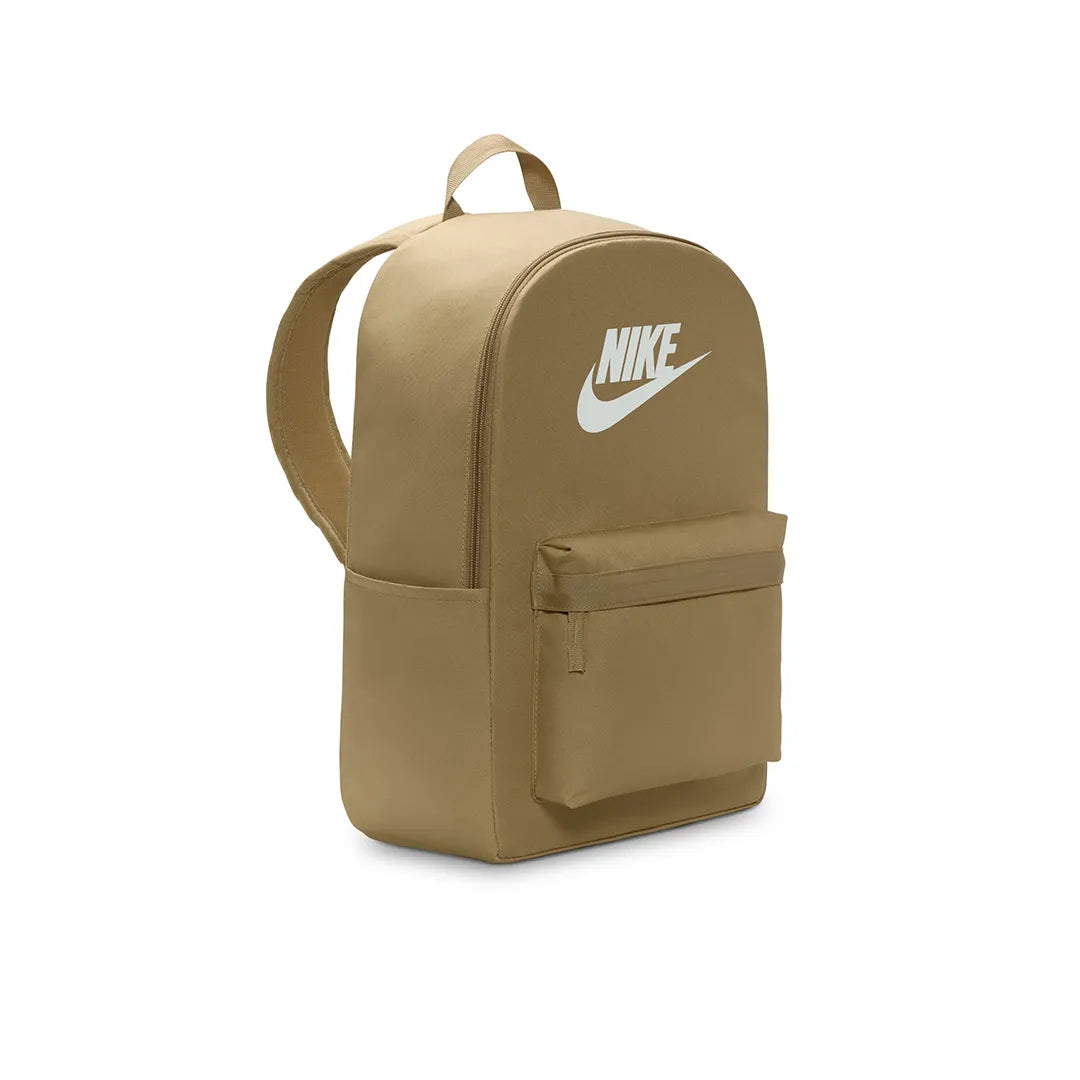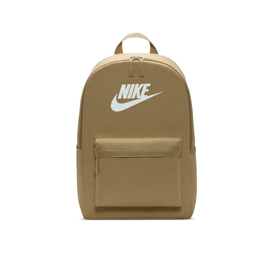 Nike Heritage Backpack (25L) A CLASSIC FOR GOOD REASON. Take your gear to go with the Nike Heritage Backpack. Its spacious main compartment features a sleeve that holds up to a 15" laptop, so your computer is never out of reach. 2 zippered accessories pockets help keep your gear organized and easy to grab. This product is made with at least 65% recycled polyester fibers. The extra zipper compartments help keep you organized, add convenience and secure your keys, wallet and phone. Densely woven polyester provides heavyweight support. The shoulder straps and back are padded for extra comfort. More Details