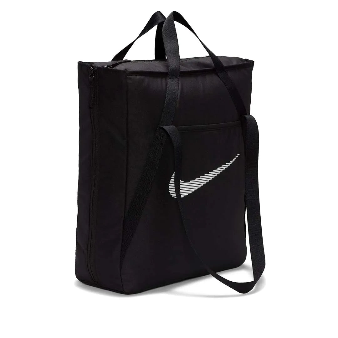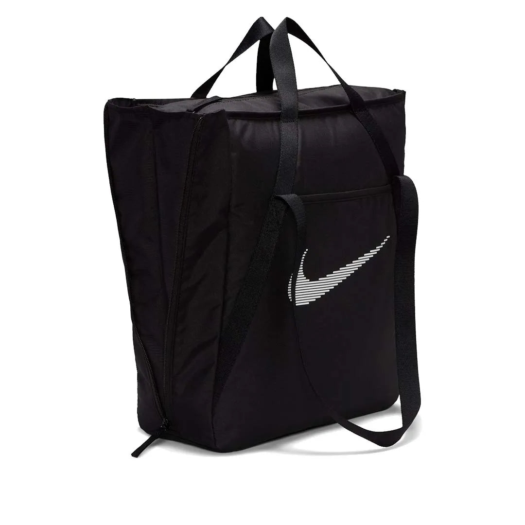This tote bag is as multidimensional as you are. No matter what your fitness journey is, the Nike Gym Tote is made to handle it. Multiple deep pockets line the inside of this bag, both open and zippered for extra security. The front and back features pockets for the small things you want easy access to. And, the size of this tote is deceptive—the sides feature expanding fabric panels for extra space whenever you need it. Pockets on the outside have snap on 1 side and hook-and-loop closure on the other. Provides 2 handle options—long shoulder tote and short grab-and-go.