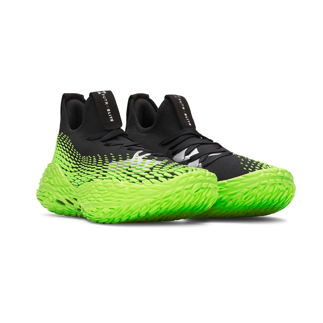 The UA FUTR X ELITE basketball shoe has UA Flow midsole and UA IntelliKnit mobility, agility, and comfort technology to help you get to any spot on the court.
