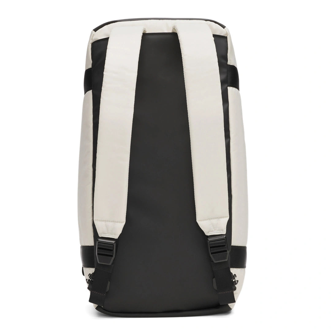 • Hidden adjustable backpack straps can be easily stowed away on the bottom panel when carrying as a duffle
