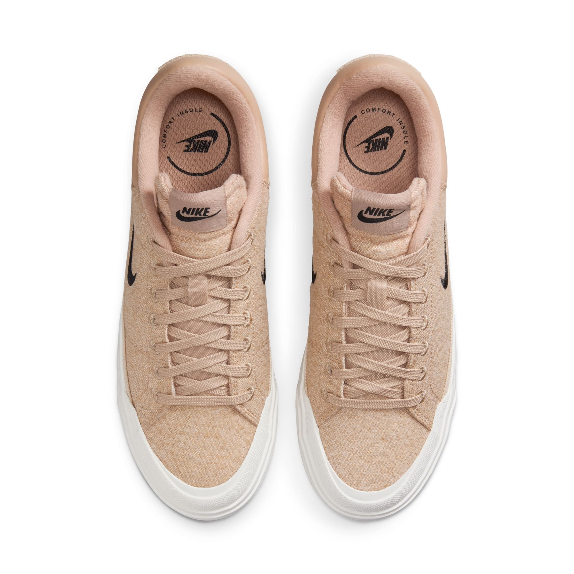 Nike Court Legacy Lift Women's Shoes Elevate your look with the Court Legacy Lift. Its platform midsole delivers a bold statement on top of the easy-to-style colors. And don't worry, we've kept the classic fit you love. Upper combines leather, textile and canvas for a classic look. Padded heel and plush tongue provide extra comfort. Rubber outsole delivers traction and durability.