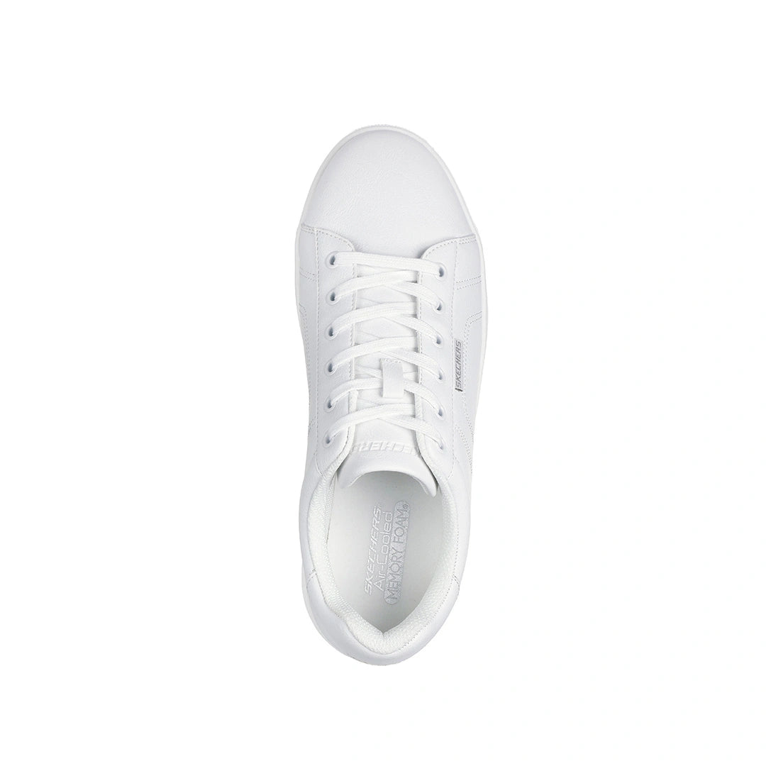 6 Eyelet Smooth Toe Lace Up Skechers Air-Cooled Memory Foam® cushioned comfort insole Skechers Classic Fit™ Faux-leather upper with decorative stitching details and a lace-up front Flexible traction outsole 7/8-inch heel height Skechers® logo detail Air-Cooled MF Classic Fit