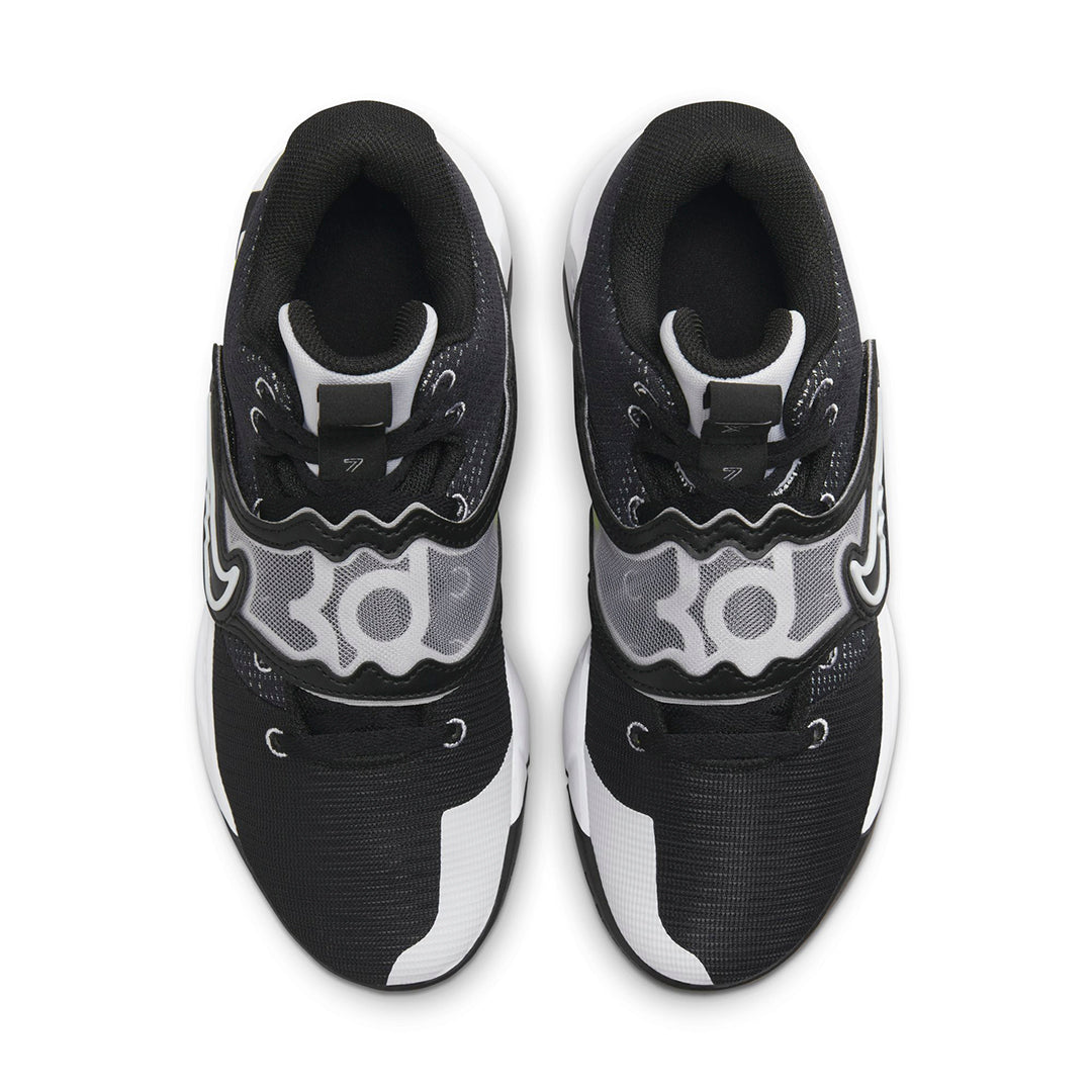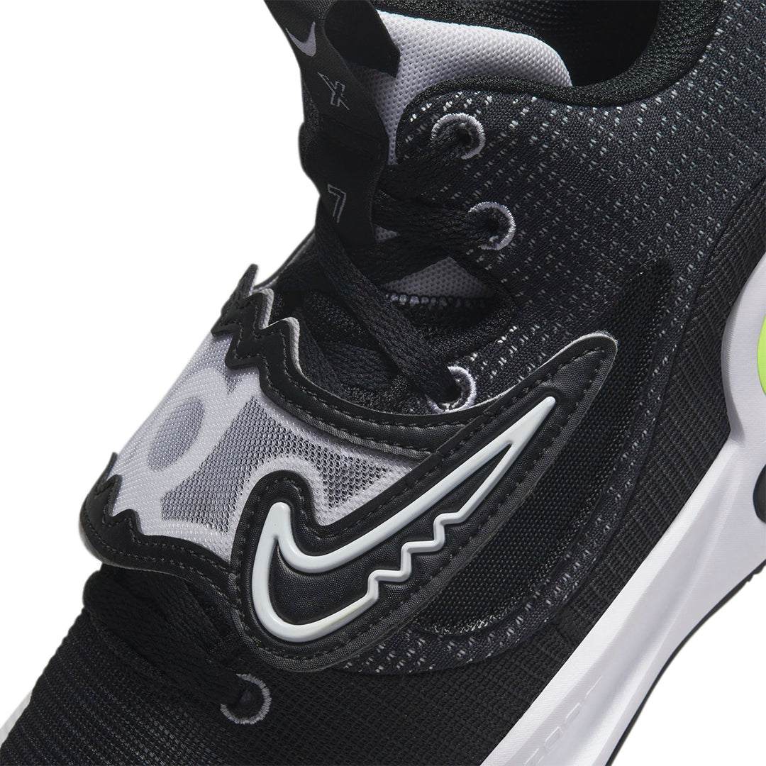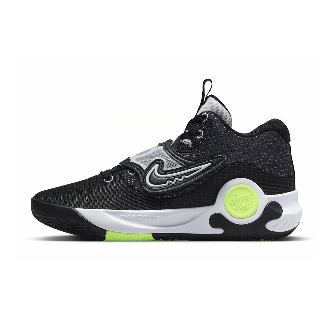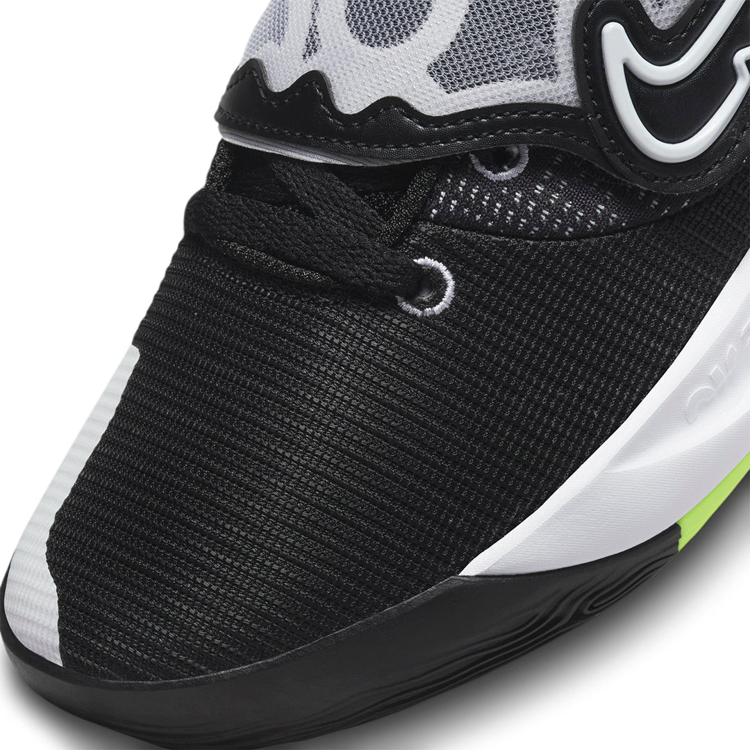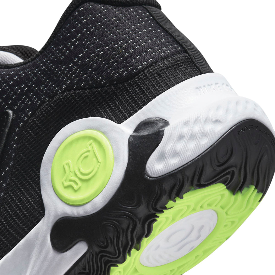 Kevin Durant KD Trey 5 X EP Basketball Shoes With its lightweight upper and plush support system, the KD Trey 5 X can help you float like KD, waiting for the perfect moment to drive to the hoop. A secure midfoot strap is suited for scoring binges and defensive stands, so that you can lock in and keep winning. This version is made for outdoor court use with its extra-durable rubber outsole. Midfoot Support The upper seems to float above the tooling and is held together by the midfoot strap to create a sort of hovering icon. The strap provides midfoot support and locks your foot in with minimum weight added to the shoe. Spring in Your Step A Zoom Air unit in the forefoot delivers a springy, responsive sensation. Plush and Durable Materials in the collar add a plush feel while the durable material by the toe is built for support and performance. KD Details A rubber piece on the side adds a spooky Slim Reaper look while the "7," KD's number, and the "X," the 10th iteration of the KD Trey 5, on the tongue loop make this unmistakably KD's shoe. More Details