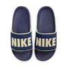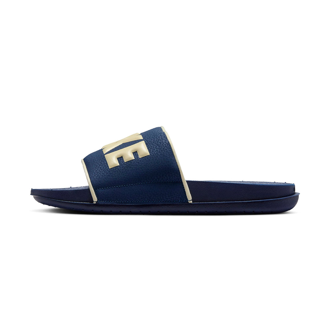 Nike Offcourt Men's Slides UNCOMPROMISING COMFORT, INFINITE VERSATILITY. These slides are designed to help you relax and recharge. Innovative dual-layered foam underfoot pairs with a plush strap to bring the comfort, while the iconic AF1 pivot circle pattern on the outsole and block letter branding casually nod to heritage hoops. What are you waiting for, get lounging. Premium Feel The contoured footbed cradles the foot, while dual-density foam adds plush underfoot cushioning and stability. 360 Degrees of Comfort The soft strap and binding on the upper ensure top-of-the-foot comfort. Made for Mobility Deep flex grooves bend with your foot for a natural feel. Added Grip Contouring at the toe provides additional grip and support, while the concentric outsole adds multi-surface traction.