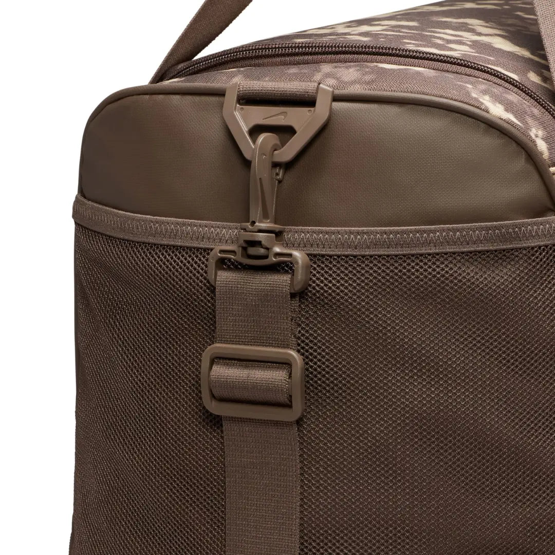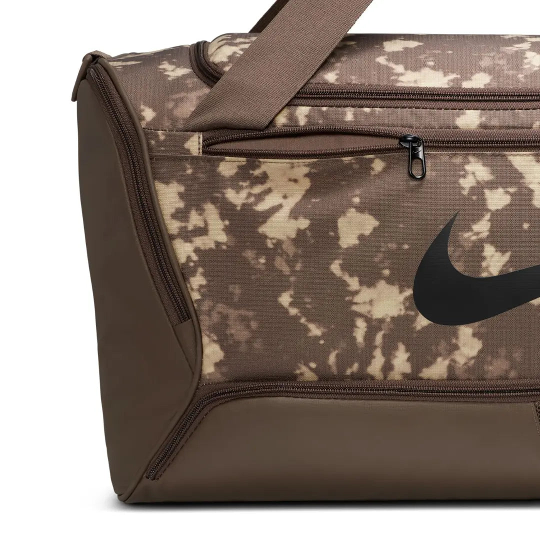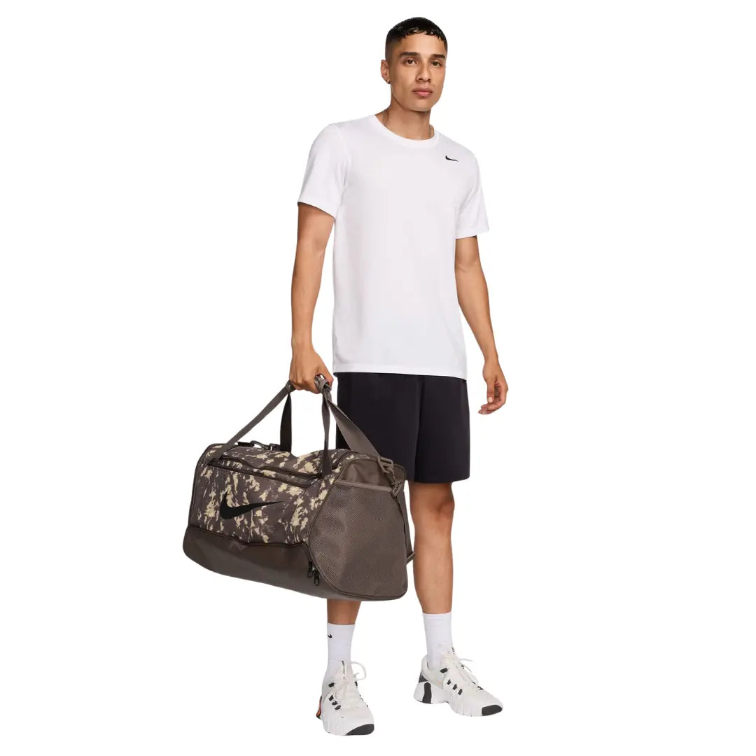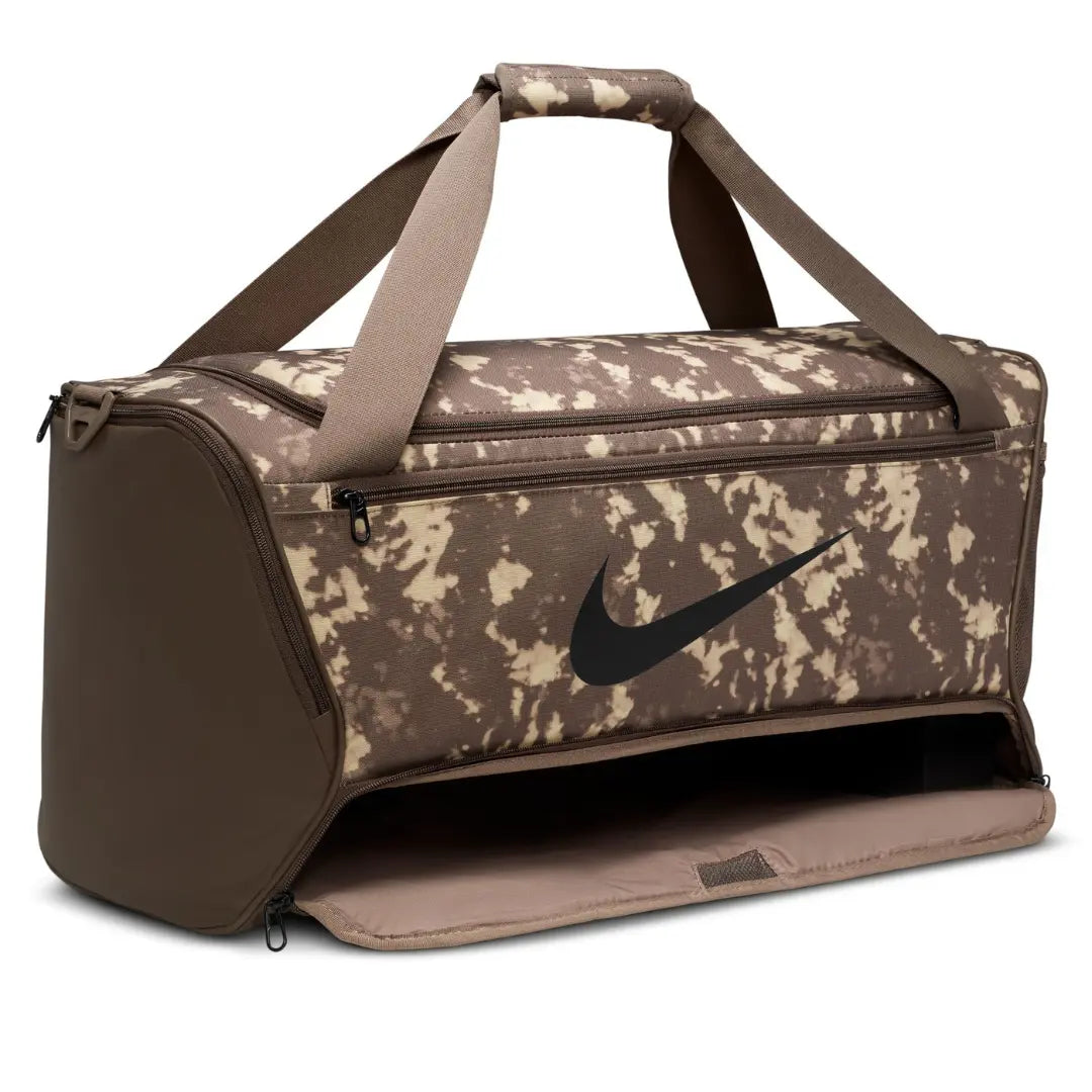Nike Brasilia Duffel Bag (Medium, 60L) This duffel bag is sure to be the MVP of your next trip to the gym. A ventilated side compartment provides space for shoes or other smelly items, while a spacious main compartment and zippered interior and exterior pockets help keep you organized. As tough as your workouts, the coated bottom can withstand bumps, scrapes and spills. Adjustable shoulder strap and dual handles give you comfortable carrying options. Side pockets hold a water bottle or other small essentials. More Details