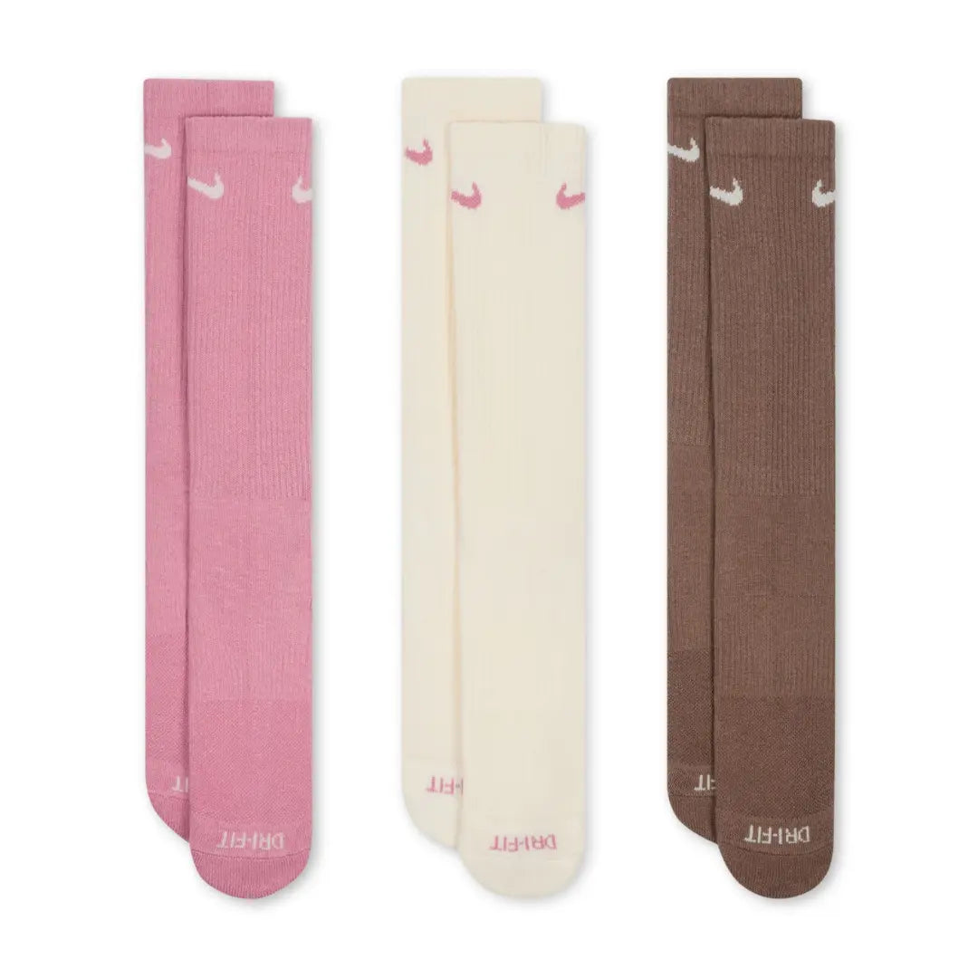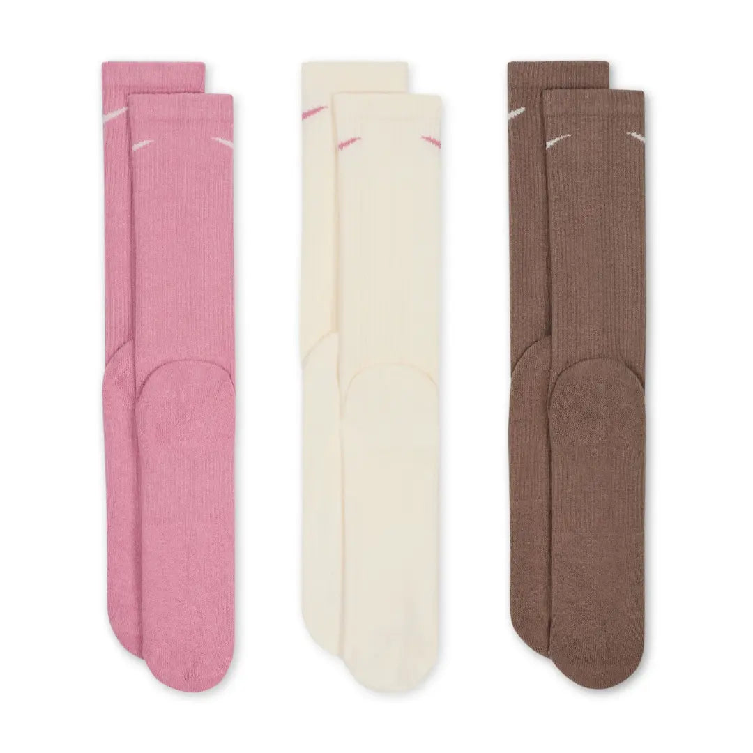 Nike Everyday Plus Cushioned Training Crew Socks (3 Pairs) COMFORT PLUS SUPPORT. The Nike Everyday Plus Cushioned Socks bring comfort to your workout with extra cushioning under the heel and forefoot and a snug, supportive arch band. Sweat-wicking power and breathability up top help keep your feet dry and cool to help push you through that extra set. Cushioning under the forefoot and heel helps soften the impact of your workout. Dri-FIT technology helps your feet stay dry and comfortable. Band around the arch feels snug and supportive. Breathable knit pattern on top adds ventilation. Reinforced heel and toe are made to last. More Details