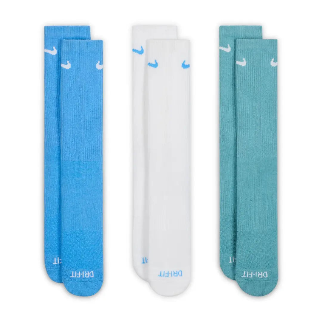 Nike Everyday Plus Cushioned Training Crew Socks (3 Pairs) COMFORT PLUS SUPPORT. The Nike Everyday Plus Cushioned Socks bring comfort to your workout with extra cushioning under the heel and forefoot and a snug, supportive arch band. Sweat-wicking power and breathability up top help keep your feet dry and cool to help push you through that extra set. Cushioning under the forefoot and heel helps soften the impact of your workout. Dri-FIT technology helps your feet stay dry and comfortable. Band around the arch feels snug and supportive. Breathable knit pattern on top adds ventilation. Reinforced heel and toe are made to last. More Details