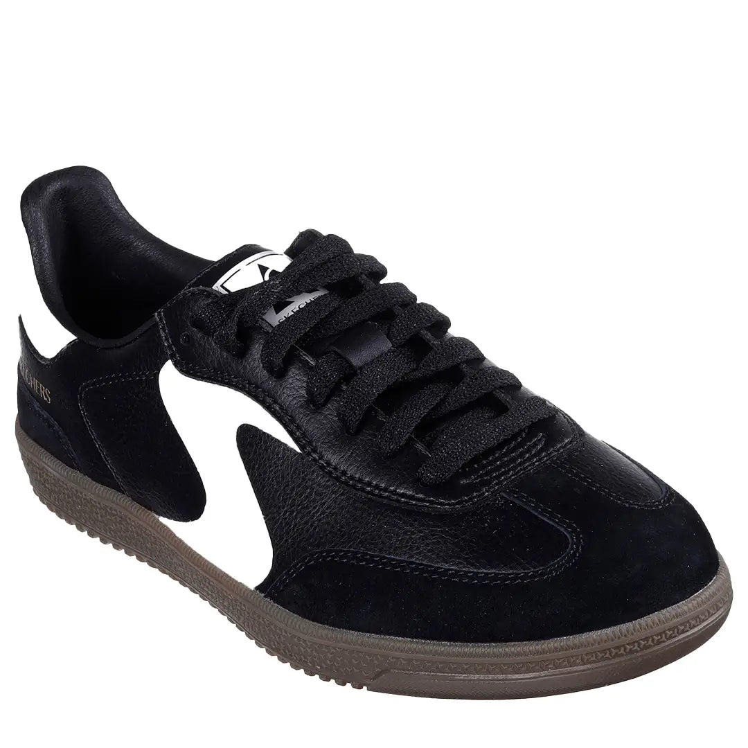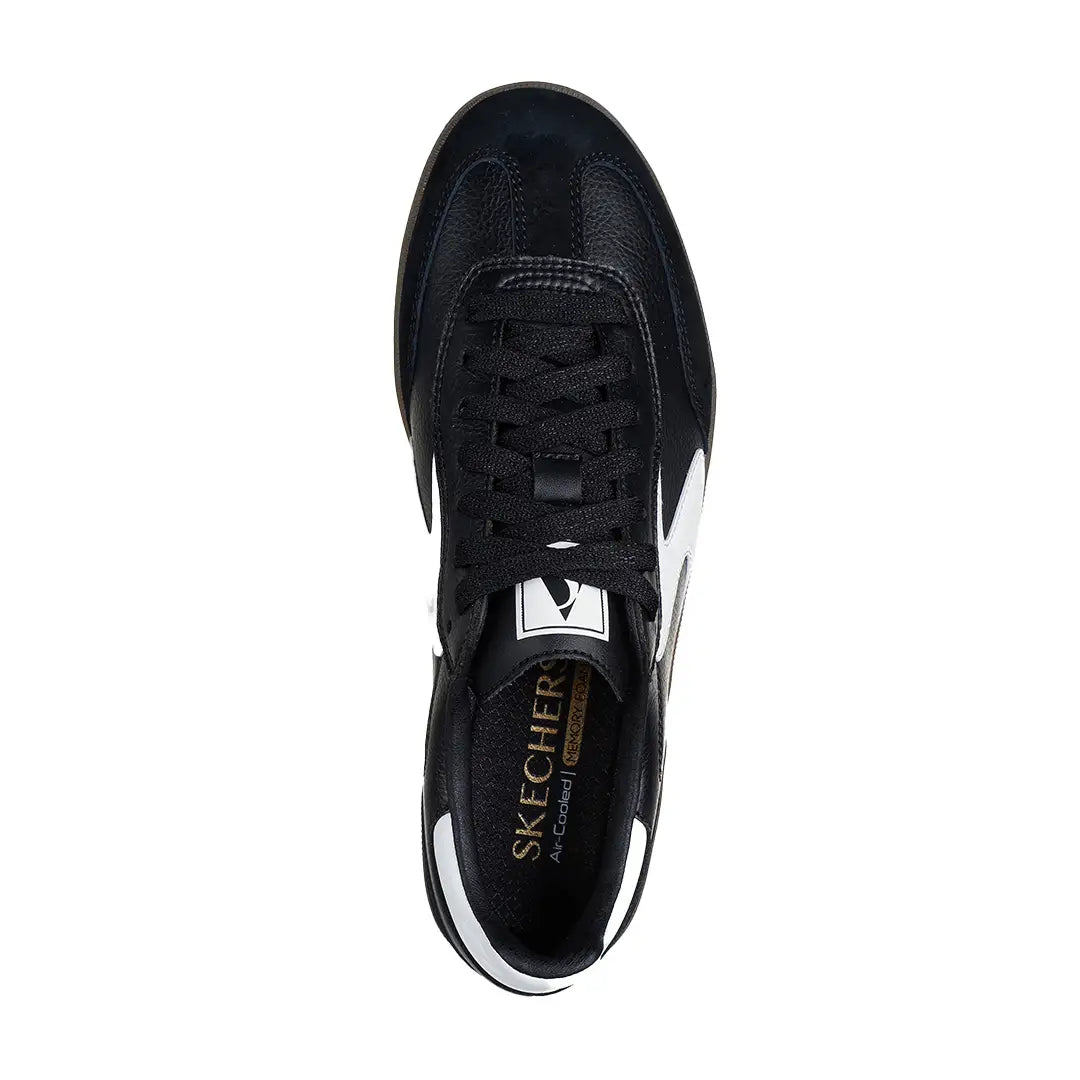 A modern classic meets fresh comfort in Skechers Hotshot - Kickoff. This lace-up court-style sneaker features a duraleather upper with pig suede overlays, contrast 'S' quarter logo, and a cushioned Skechers Air-Cooled Memory Foam® insole.