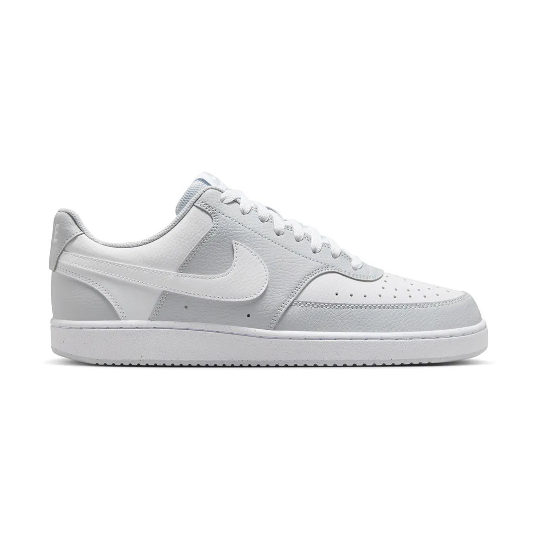 Nike Court Vision Low Men's Shoes In love with the classic look of '80s basketball, but have a thing for the fast-paced culture of today's game? Meet the Court Vision Low. It keeps the soul of the original with crisp synthetic leather and stitched overlays, while the plush collar keeps it sleek and comfortable for your world. Synthetic leather upper softens and gains vintage character with wear. Perforations on the toe and sides add breathability. Rubber outsole gives you durable traction. Padded, low-cut collar looks sleek and feels great.