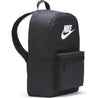 Take your gear to go with the Nike Heritage Backpack. Its spacious main compartment features a sleeve that holds up to a 15" laptop, so your computer is never out of reach. 2 zippered accessories pockets help keep your gear organized and easy to grab. This product is made with at least 65% recycled polyester fibers. The extra zipper compartments help keep you organized, add convenience and secure your keys, wallet and phone. Densely woven polyester provides heavyweight support. The shoulder straps and back are padded for extra comfort.