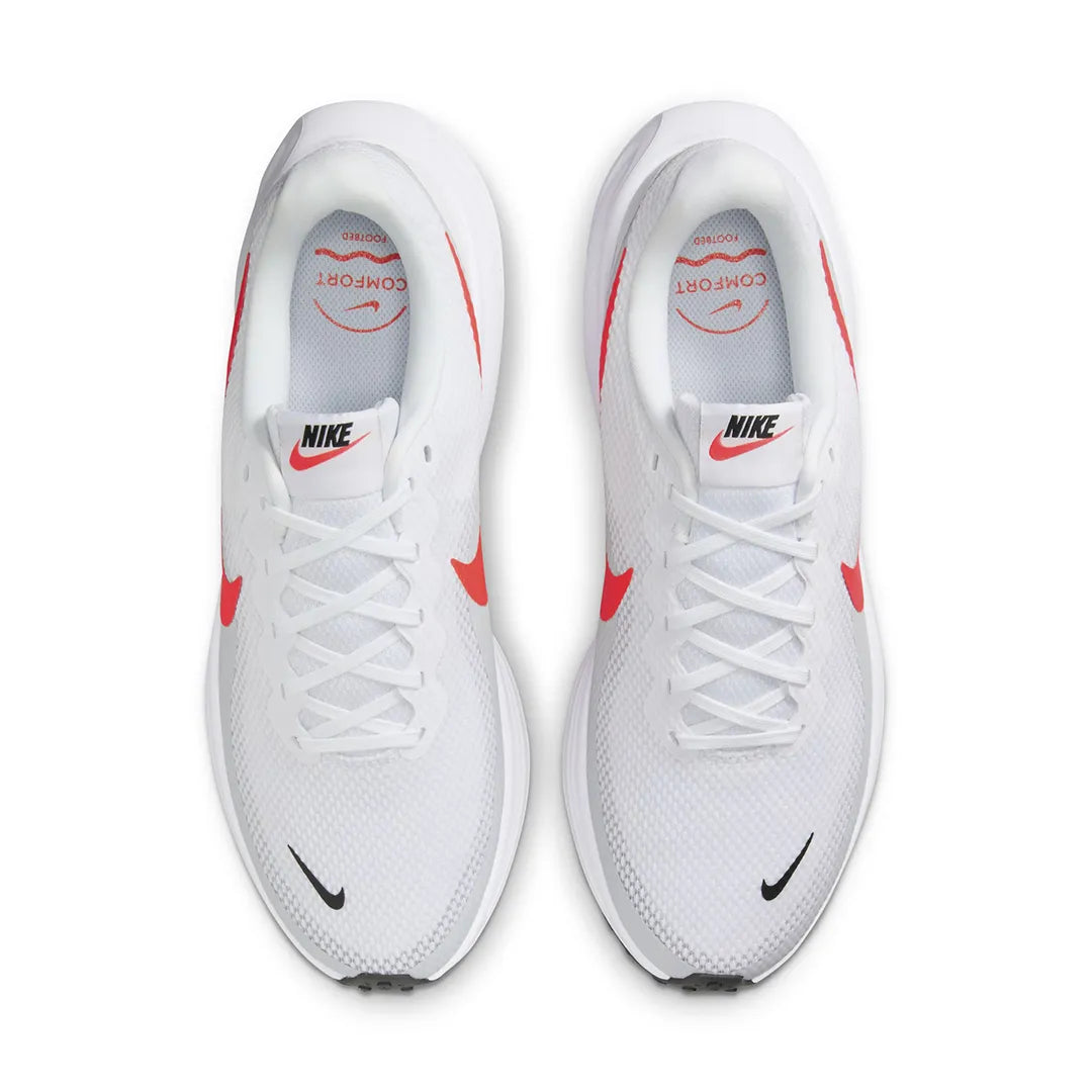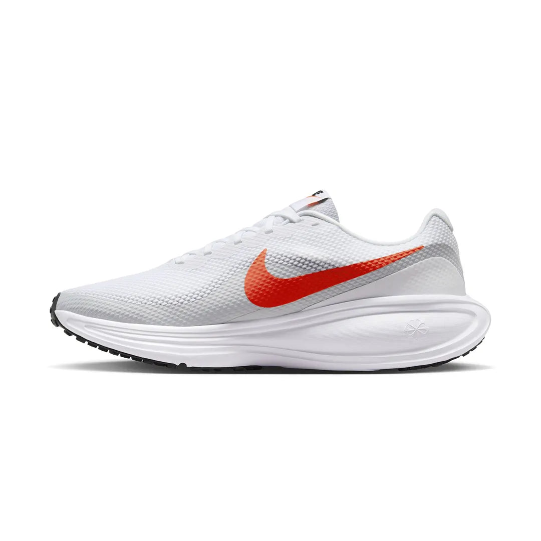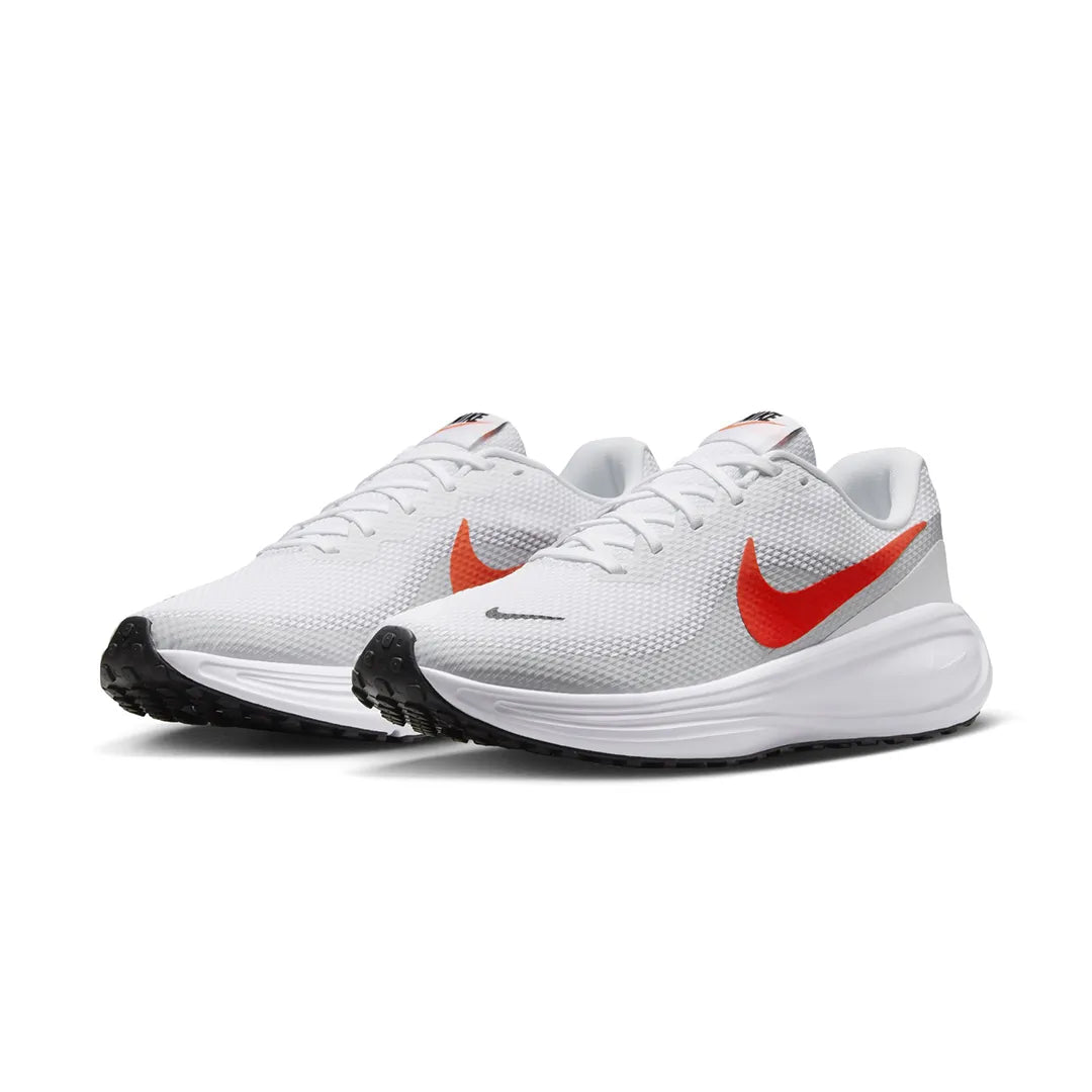 Nike Revolution 8 Men's Road Running Shoes The Revolution 8 is an evolution of your faithful favorite. Every stride is cushioned thanks to a foam midsole and a flexible forefoot that makes your steps soft. Plus, the mesh upper is even more breathable than the previous iteration, so you can run in cool, collected comfort. Mesh Upper The mesh upper offers a comfortable, breathable feel. Foam Midsole The foam midsole delivers intuitive cushioning through comfort-focused rocker geometry. Cushioned Outsole The outsole has an intuitive Nike design and flex grooves in the forefoot that create a comfortable and cushioned effect as you run. Touch Points Touch points at the heel and tongue create a natural feel as you take the shoes on and off. What's New? Mesh on upper is more breathable than the Revolution 7, helping keep you cool. More Details