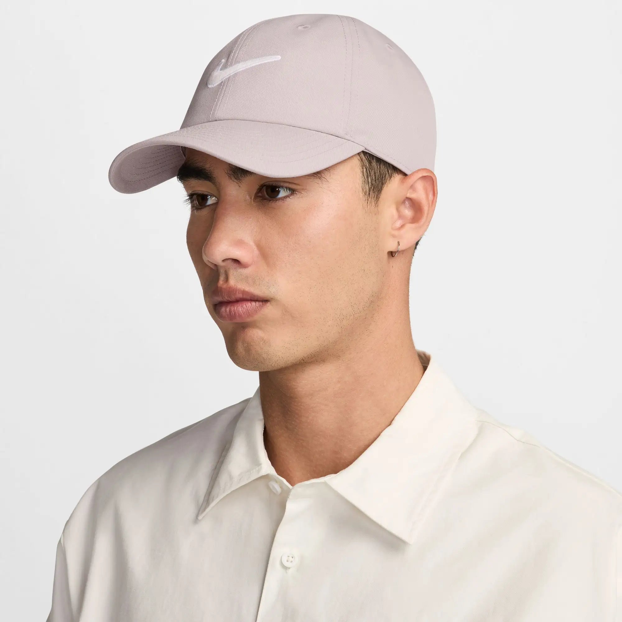 Nike Club Unstructured Swoosh Cap Bring the casual vibes to any outfit with our Nike Club cap. Its classic 6-panel design comes in soft, unstructured twill fabric with a pre-curved bill for easy styling. The mid-depth crown features an outlined Swoosh for a polished finish. The back strap and tri-glide closure helps you find the right fit. Woven twill fabric feels soft and smooth on your skin for easy, all-day wear. Curved bill and classic 6-panel design make for simple styling. Back closure is adjustable using the metal tri-glide. The excess back strap can be neatly tucked into the sweatband.