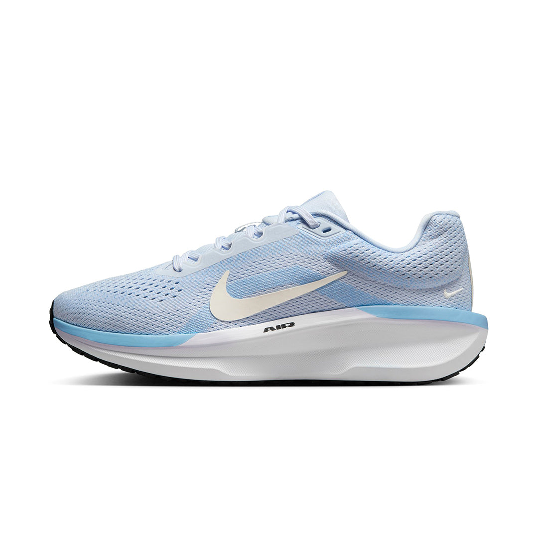 Nike Winflo 11 Women's Road Running Shoes Springy Nike Air combines with soft foam for an energized ride. Responsive cushioning provides a balanced ride for everyday runs. Experience energy return with a combination of Cushlon 3.0 foam and a full-length Nike Air unit in the midsole. Plus, an elastic midfoot band and spacious forefoot provide an accommodating, comfortable fit. Breathable Upper Engineered mesh on upper provides breathability. Responsive Ride Our Cushlon 3.0 foam midsole combines with a full-length Nike Air unit to energize each step. Reliable Traction Rubber waffle-inspired outsole offers reliable traction. More space in forefoot Wider heel Added breathability More Details