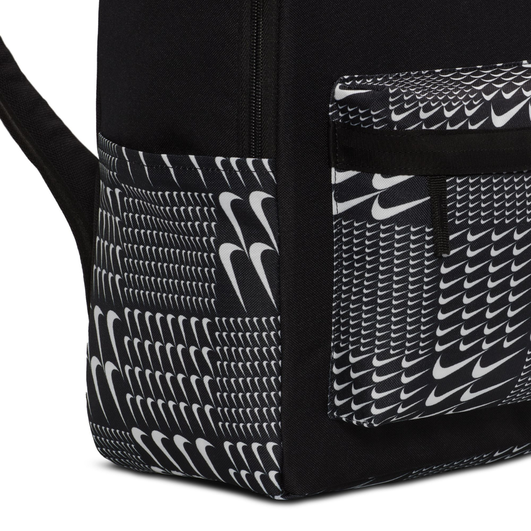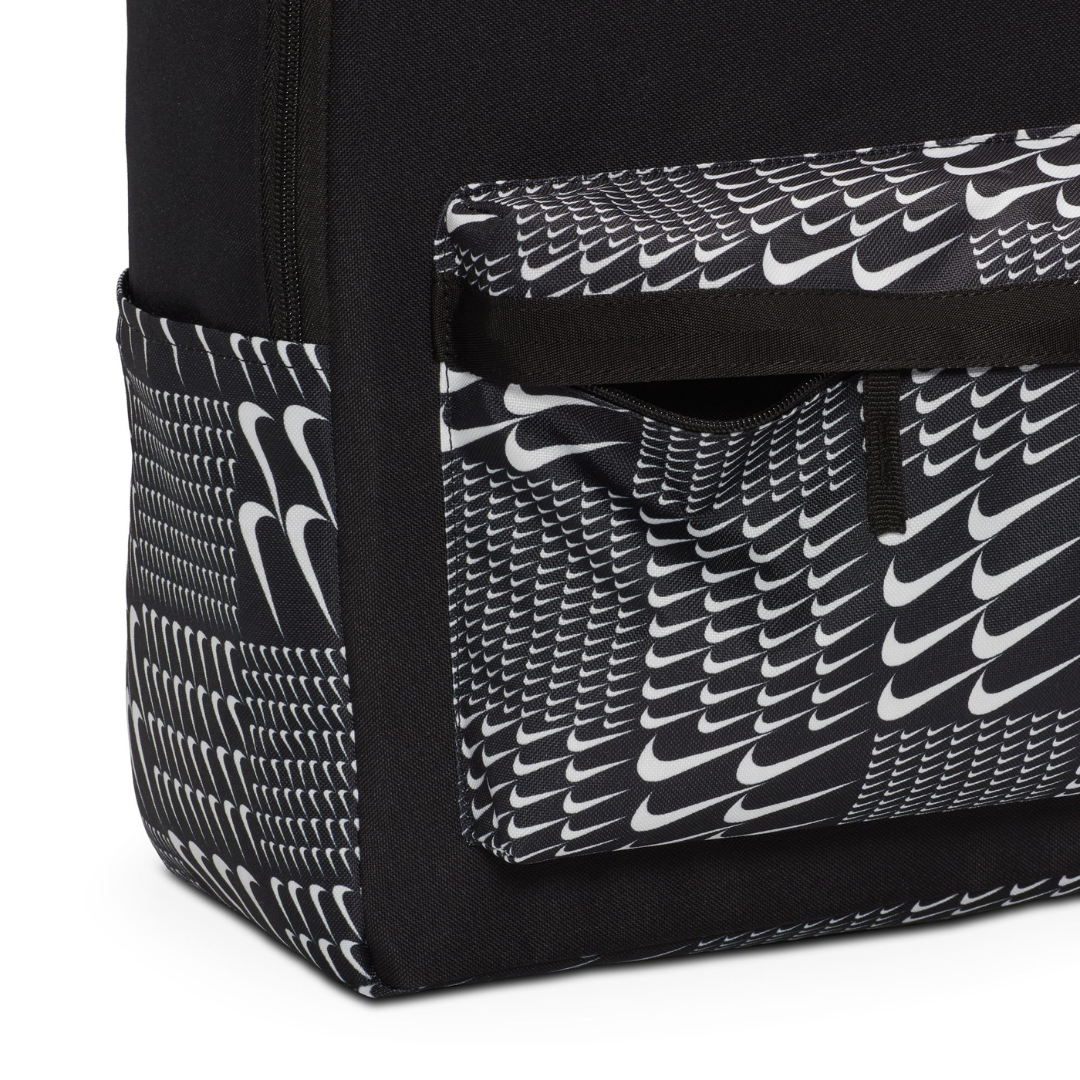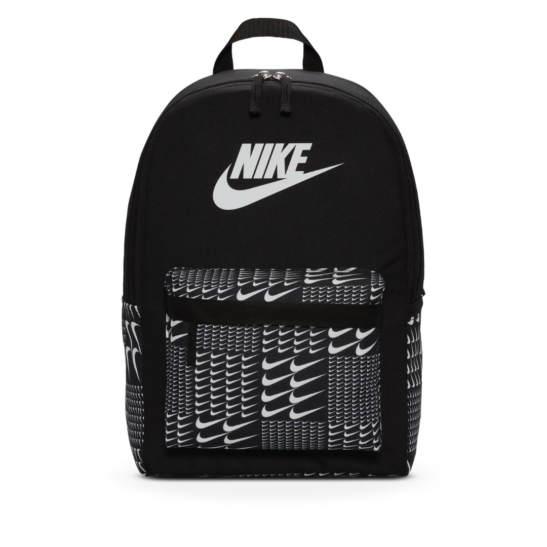 Nike Heritage Backpack (25L) This bag has your back. Keep your laptop separate from your large items in the main compartment, your small essentials secure in the zippered front pocket and a water bottle in a side pocket. Internal sleeve stores a laptop up to 15". Padded shoulder straps are adjustable for a comfortable fit. Densely woven polyester provides heavyweight support. More Details