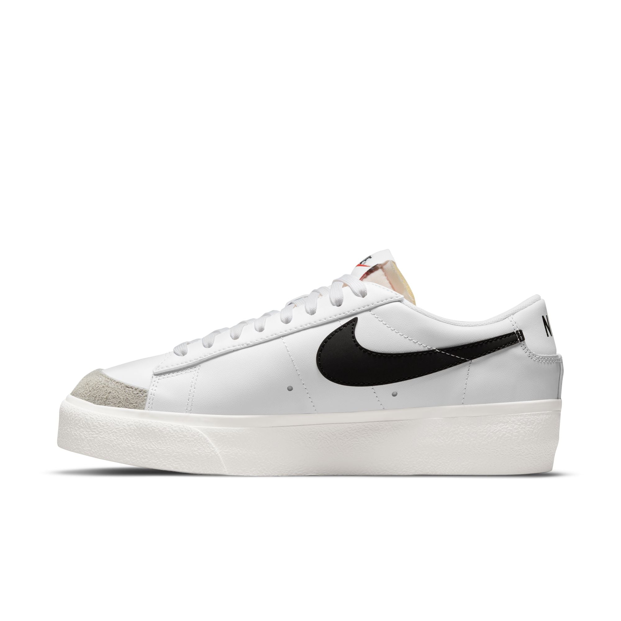 Praised for its classic simplicity and comfort, the Nike Blazer Low Platform elevates the hoops icon. The lifted midsole/outsole lets you step confidently while the upper keeps the proportions you loved from the original. Elevated midsole with double-taped detailing offers a lifted stance for a confident and bold look. Low-cut, padded collar creates a sleek look that feels great. Exposed foam tongue adds plush, DIY style. Vulcanized construction fuses the outsole to the midsole for a streamlined look and feel. Solid rubber sole with herringbone pattern adds traction, durability, and heritage styling.