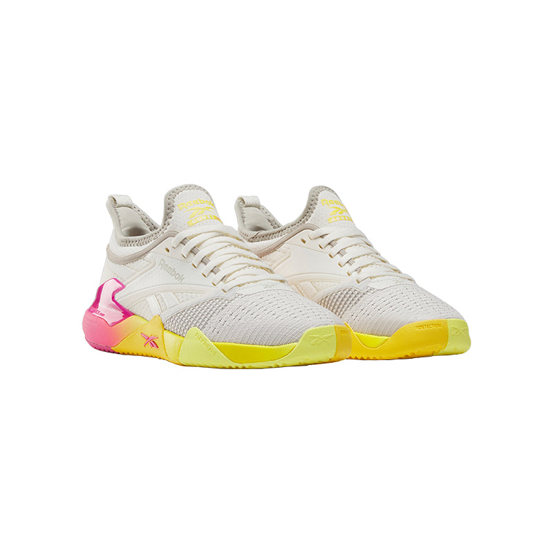 Step out of the gym and onto the court in these women's Reebok training shoes. Created for any game you play on the court, whether that's tennis, pickleball, padel, racquetball or badminton. They have a Flexweave® upper with extra support where you need it most. A herringbone Griptonite rubber outsole provides multidirectional traction to keep you firmly planted on the court.