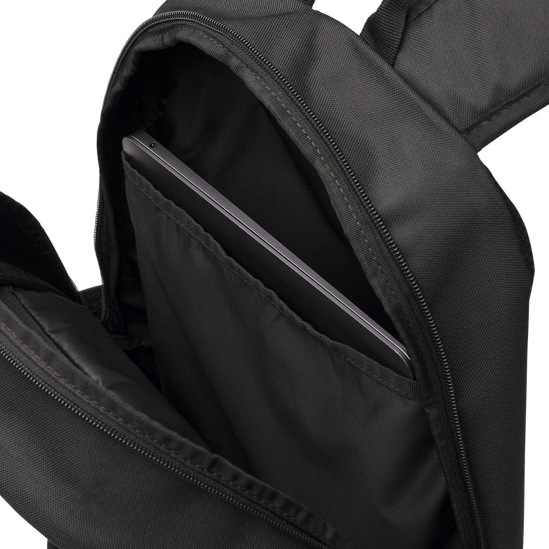 - Soft-lined laptop sleeve—holds up to 15" MacBook Pro® or similarly sized laptop