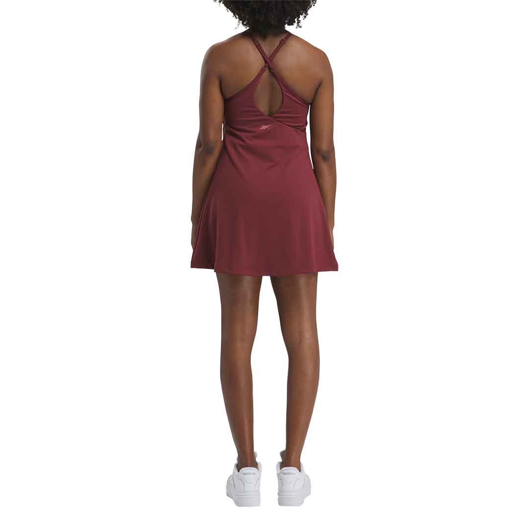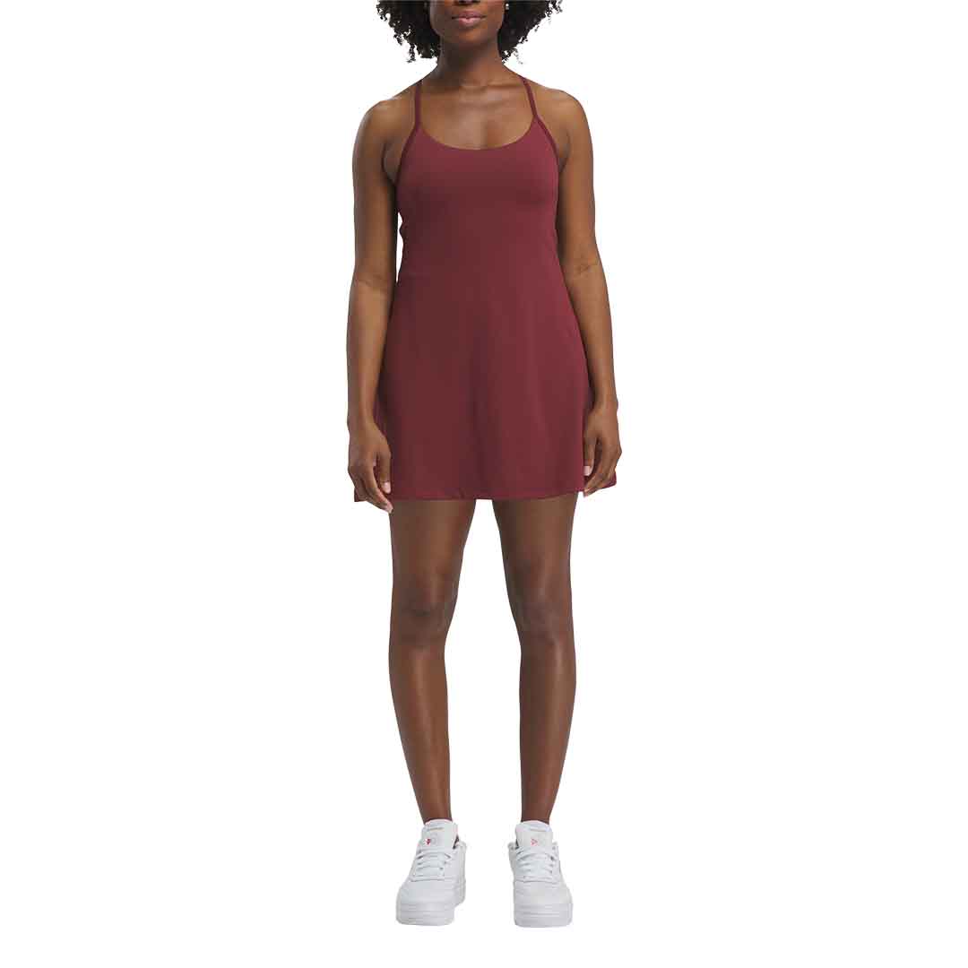 Your new go-to silhouette designed for movement. Stretch knit fabric makes this strappy dress comfortable, while the adjustable straps make the fit customizable. Inner bike short bodysuit provides extra coverage so you can move confidently through your day. Moisture-wicking Speedwick technology keeps you dry while MOTIONFRESH technology helps eliminate odor.