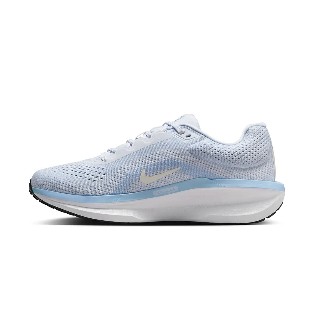 Nike Winflo 11 Women's Road Running Shoes Springy Nike Air combines with soft foam for an energized ride. Responsive cushioning provides a balanced ride for everyday runs. Experience energy return with a combination of Cushlon 3.0 foam and a full-length Nike Air unit in the midsole. Plus, an elastic midfoot band and spacious forefoot provide an accommodating, comfortable fit. Breathable Upper Engineered mesh on upper provides breathability. Responsive Ride Our Cushlon 3.0 foam midsole combines with a full-length Nike Air unit to energize each step. Reliable Traction Rubber waffle-inspired outsole offers reliable traction. More space in forefoot Wider heel Added breathability More Details