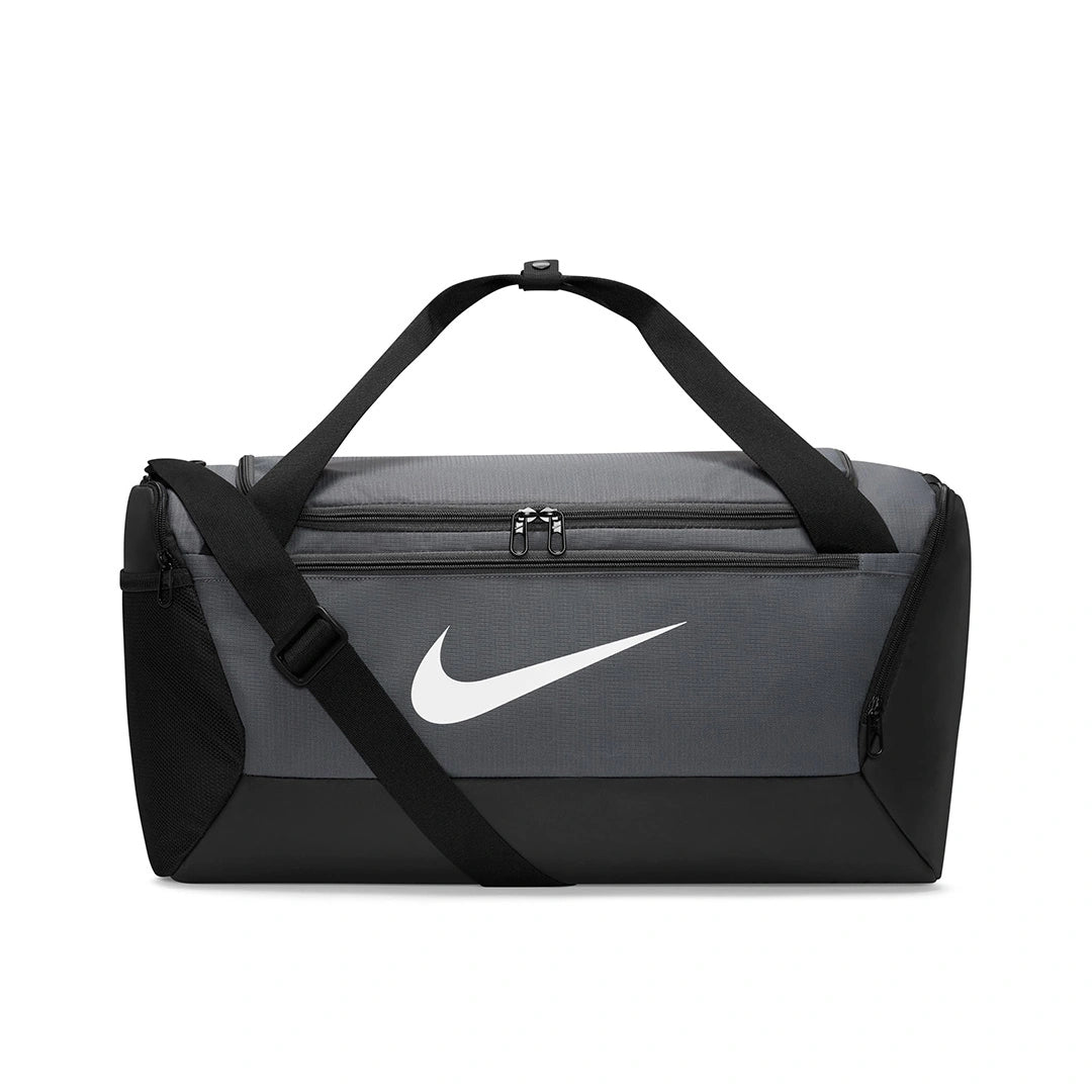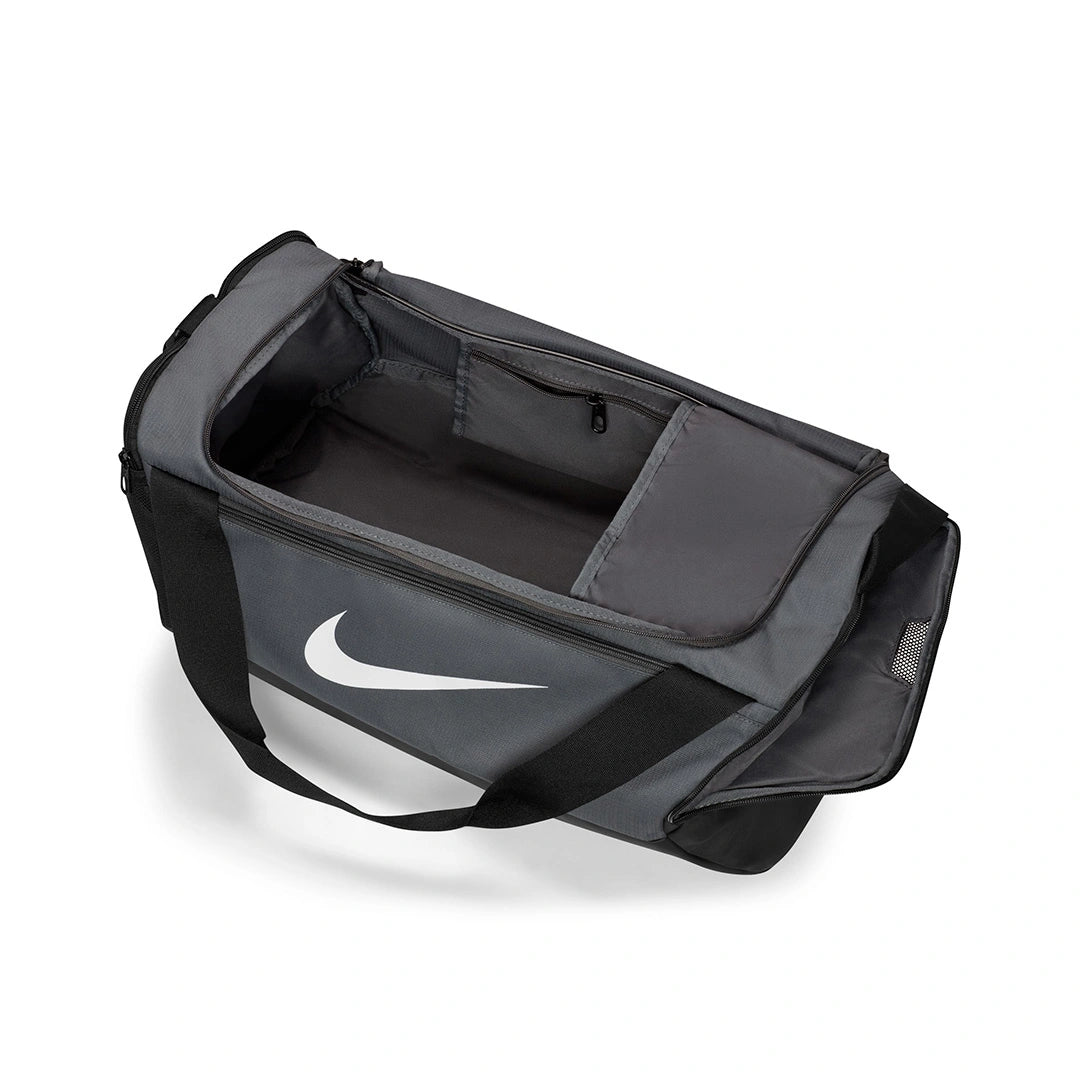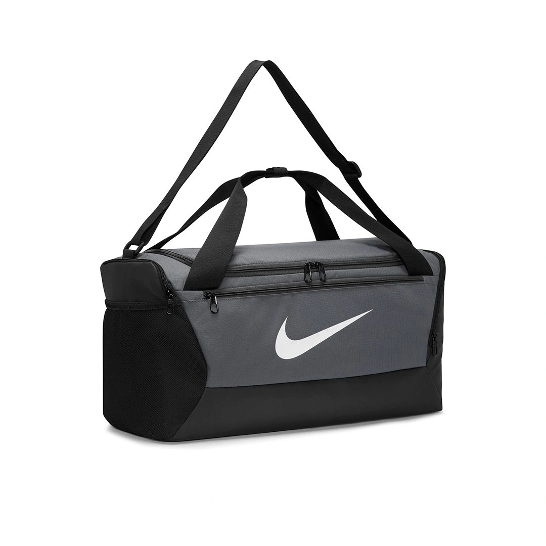 Nike Brasilia Training Duffel Bag (Small, 41L) Hit the gym with the duffel bag made to hold all your gear. The ventilated side compartment separates your smelly shoes from your post-sweat-sesh clothes. Get quick access to your phone or keys with the zippered front pocket when you're on the go. Toss it in your locker, next to the power rack and, when you're done, in your car—the coated bottom helps shield your things from bumps, scrapes and spills. Spacious zippered main compartment provides easy access to your gear. Inner zippered pocket stashes your valuables. Adjustable shoulder strap and dual handles give you comfortable carrying options. Ventilated side pocket keeps dirty shoes and sweaty clothes separate from your clean gear. Side pockets hold a water bottle or other small essentials. More Details