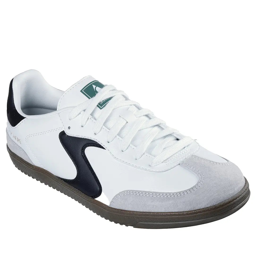 A modern classic meets fresh comfort in Skechers Hotshot - Pyke. This lace-up Court & Classics sneaker features a duraleather and pig suede upper with contrast 'S' quarter logo and our signature Skechers Air-Cooled Memory Foam® cushioned insole.