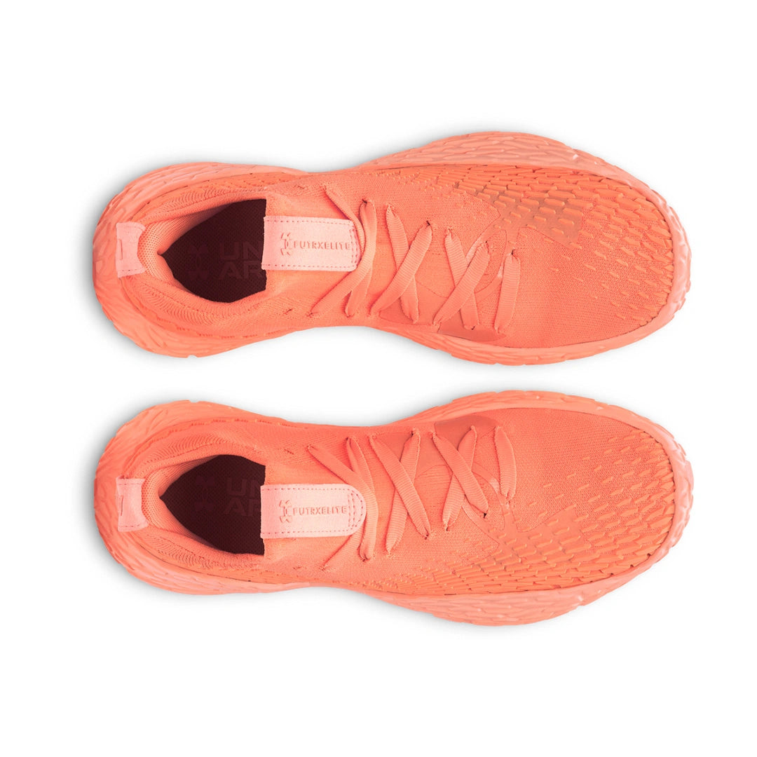 The UA FUTR X ELITE basketball shoe has UA Flow midsole and UA IntelliKnit mobility, agility, and comfort technology to help you get to any spot on the court.